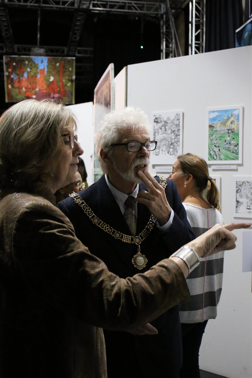 Guests including the Mayor of Bath, Councillor Patrick Anketell-Jones, and the Leader of Bath and North East Somerset Council, Councillor Karen Walker mingled with other guests at the exhibition’s Private View and launch that evening in the Sophie Cameron Centre. Three of our music scholars, Holly Lancaster, Year 8, Lucia Liu and Winona Tong, both Year 11, provided our guests with beautiful music whilst they viewed the displays which certainly set the tone for the evening. Mrs Jane Robb, Chair of the Governors, and Mrs Jo Duncan, Head, also attended along with former and current staff and Governors, alumnae, parents and key supporters of the school before the exhibition was opened to the wider school community and public over the weekend. Throughout Saturday and Sunday it was a great pleasure in particular to see so many former members of staff and alumnae from the past 20 years all enjoying a trip down memory lane inspired by the wonderful artwork on display.