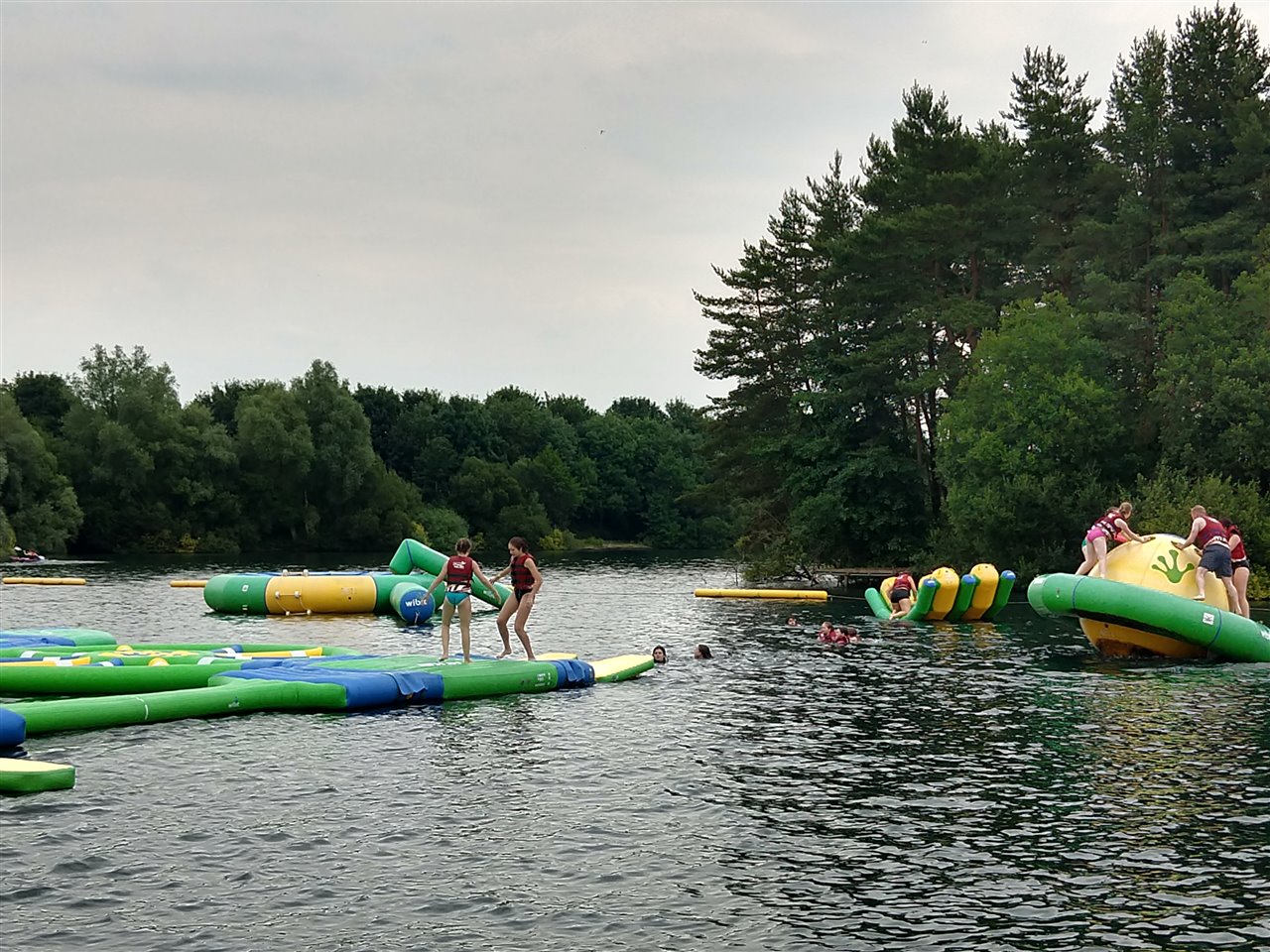 On Sunday, we went on a trip to the New Forest Aqua Park. The journey there took about an hour or so, which was good because we needed our energy for all the fun later on! We arrived with plenty of time to get changed, buy ice creams and slush puppies. After collecting our buoyancy vests and leaving all our stuff with Ms. R and Ms. L we had a safety briefing and then walked down the long boardwalk to the inflatables Ms. M and Ms. W came with us and joined us on the inflatables and in the water – it was fab! Jumping in, swimming and trying not to fall into the water! The weather was perfect as it was sunny and very hot. At the end of an exhausting hour, we got changed, some didn’t because they forgot to bring dry clothes, and we then had time to get drinks, ice creams and more food. We all got back on the coach and had our afternoon snacks from our catering people, some of us fell asleep and some were very noisy. This was one of the best trips this year!